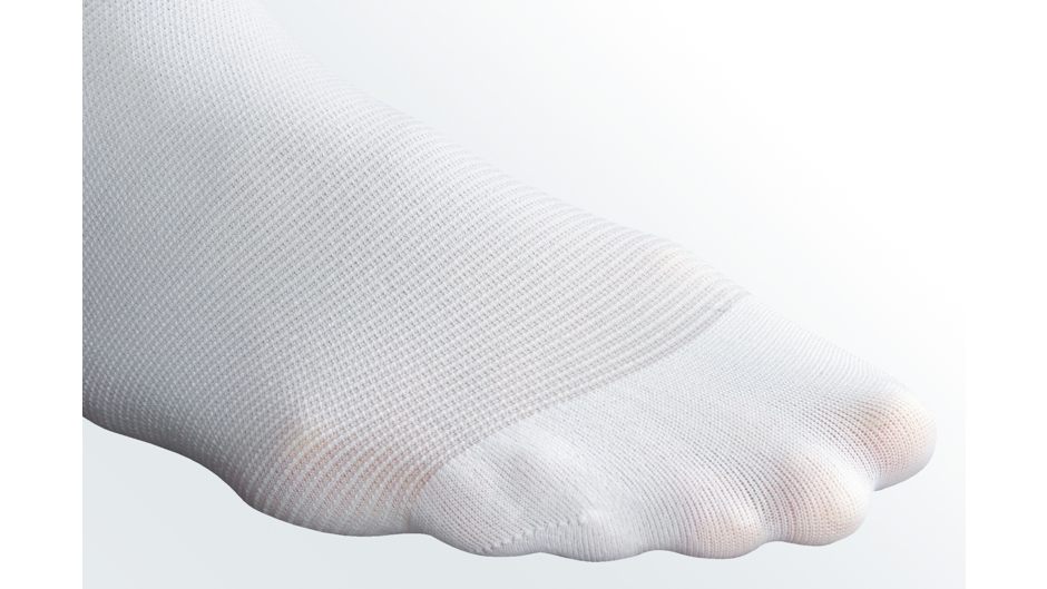 • Abertura plantar que permite uma inspeção fácil e rápida da perfusão capilar periférica sem ter de descalçar a meia
